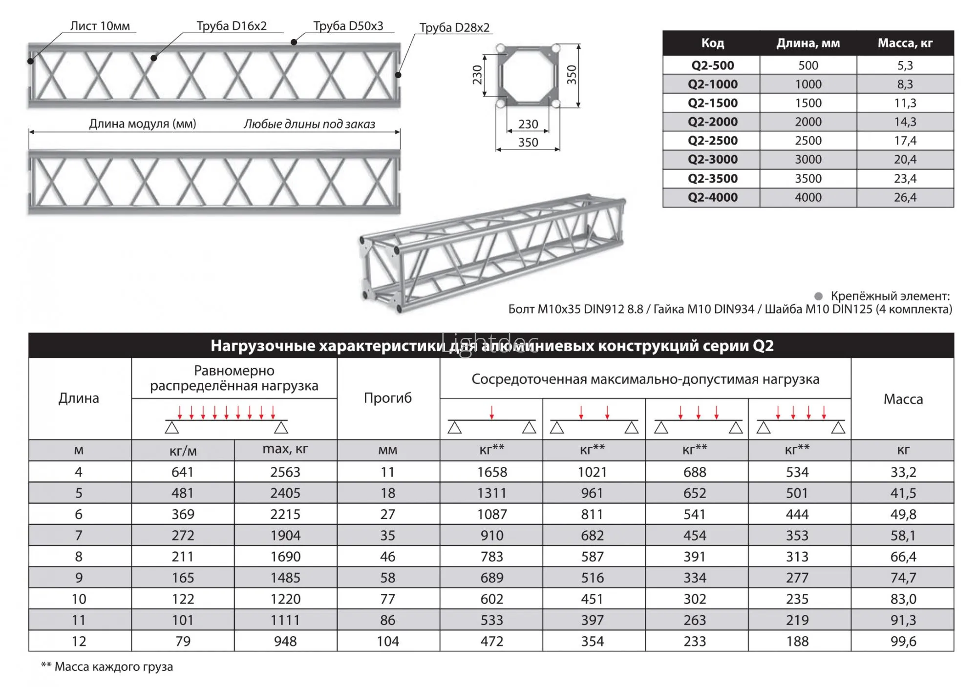 - Длина фермовой конструкции: 4000 мм.