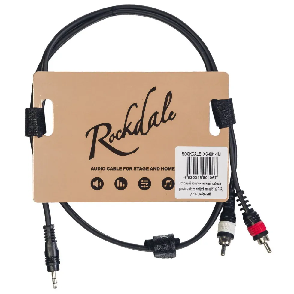 Кабель ROCKDALE XC-001-1M — компонентный, чёрного цвета, длина — 1 метр. С одной стороны — джек 3,5, с другой — два разъёма RCA с цветовой маркировкой. Подходит для коммутации оборудования и инструментов. Отличается высоким качеством благодаря современным материалам и технологиям.