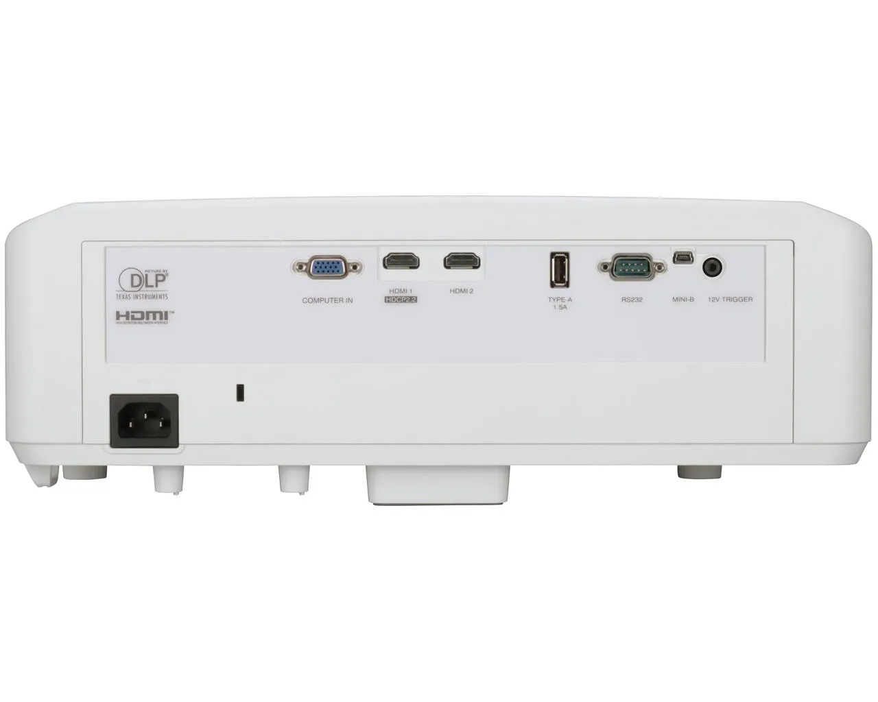 - Разъемы: Вход для ПК, HDMI 1 с поддержкой HDCP2.2, HDMI 2, USB Mini B, триггерный (12 В), USB Mini A (источник питания 1,5 А) и RS-232