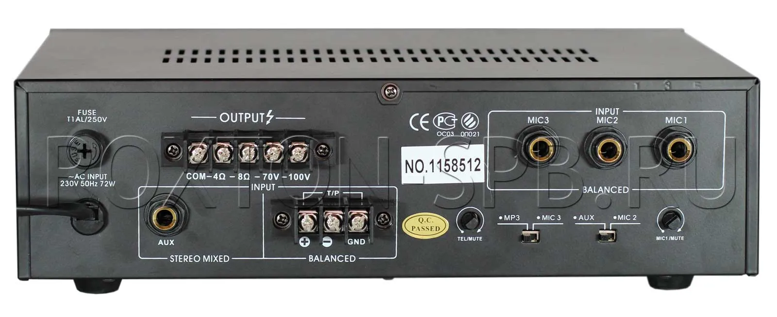 Усилитель имеет 3 микрофонных и 2 линейных входа с возможностью микширования. Линейные входы предусматривают подключение к ним стерео сигнала. Линейный выход стерео для подключения дополнительного усилителя или другого оборудования, например низкоомных акустических систем.