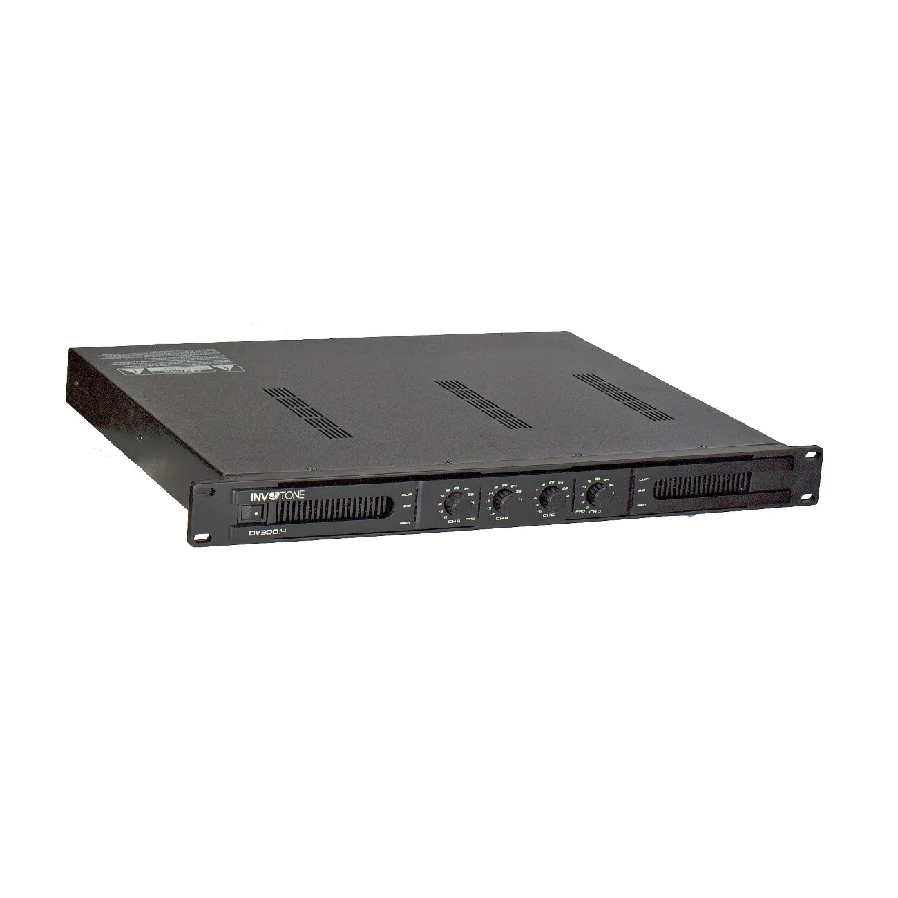DV300.4 - трансляционный четырехканальный усилитель мощности, работающий в D-классе. Разработан и произведён компанией Invotone. Рабочий частотный диапазон от 100 до 15000 Гц (+/- 1 дБ), при этом частотна нелинейных искажений не превышает 0.1%, что способствует реалистичной передаче сигнала источника. Общая номинальная выходная мощность каналов усиления составляет 300 Вт RMS при напряжениях в 100 и 70 вольт. На задней панели располагаются входные и выходные разъемы, построенные на базе надежных клеммных колодок европейского типа, что позволяет осуществлять подключение различных аудиоустройств, таких как тюнеры, проигрыватели или колонки. На переднюю панель вынесены две ручки для отдельной настройки каждого из каналов и две линейки индикаторов для отображения параметров. Надежный импульсный блок питания со встроенными системами защиты усилителя от короткого замыкания и перегрева способствует безотказной работе усилителя на длительный срок эксплуатации. Система оптимизации напряжения Automatic Voltage Switcher позволяет устройству продолжать бесперебойную работу при понижениях или всплесках напряжения, а также способствует снижению процента искажений и шумов в сигнале.Характеристики и возможности