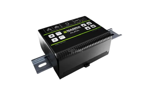 - Комплект: MADRIX AURA,SDHC-карта, сетевой кабель, съемный винтовой зажим, 2 кронштейна для настенного монтажа, техническая инструкция