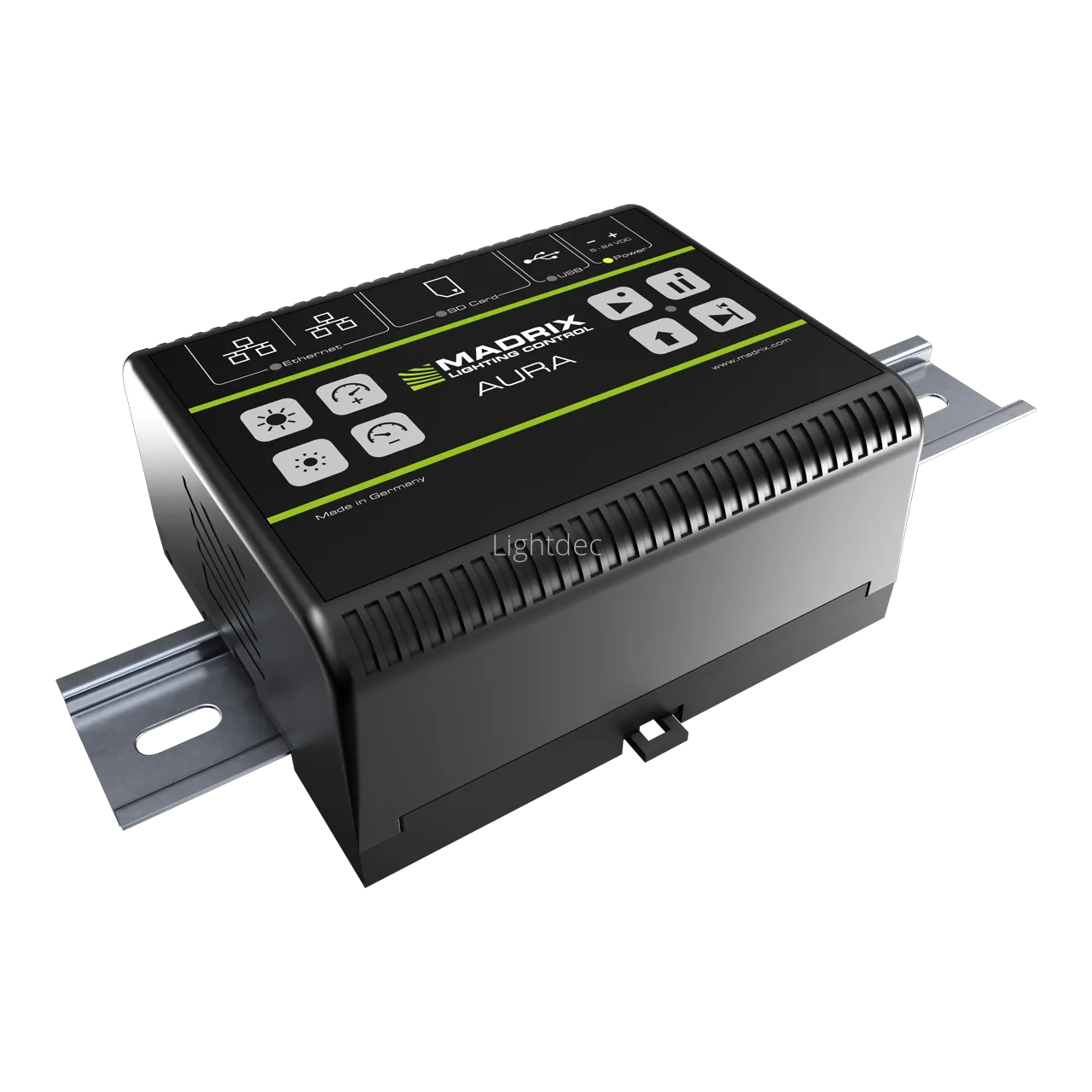 - Комплект: MADRIX AURA,SDHC-карта, сетевой кабель, съемный винтовой зажим, 2 кронштейна для настенного монтажа, техническая инструкция.