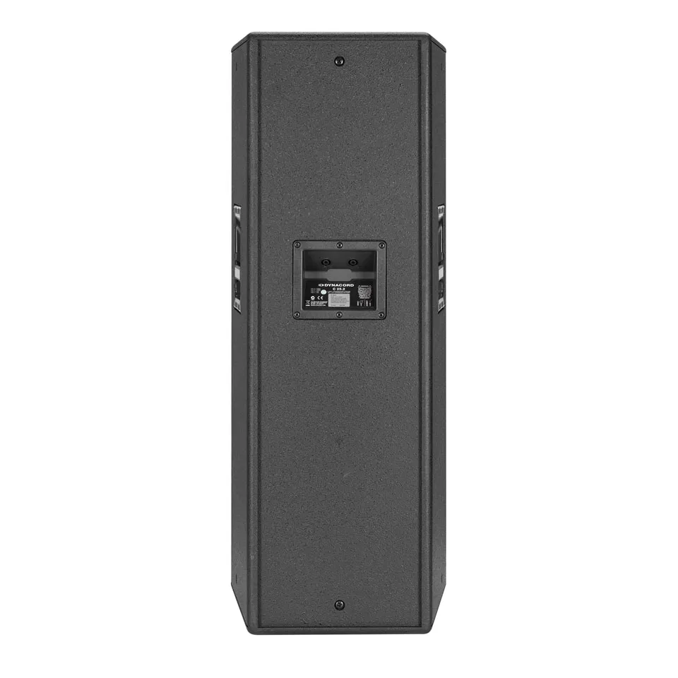 Dynacord C 25.2 невероятно высокий уровень звукового давления до 139 дБ обеспечивает компактный двухполосный полнодиапазонный акустический кабинет мощностью 1000 Вт RMS (пиковая мощность 4000 Вт), оснащенный двумя 15-дюймовым НЧ динамиками EV SMX 2151 и компрессионным драйвером EV ND2-8 (от 1750 Гц), нагруженным на рупор постоянной направленности 90°х40°.