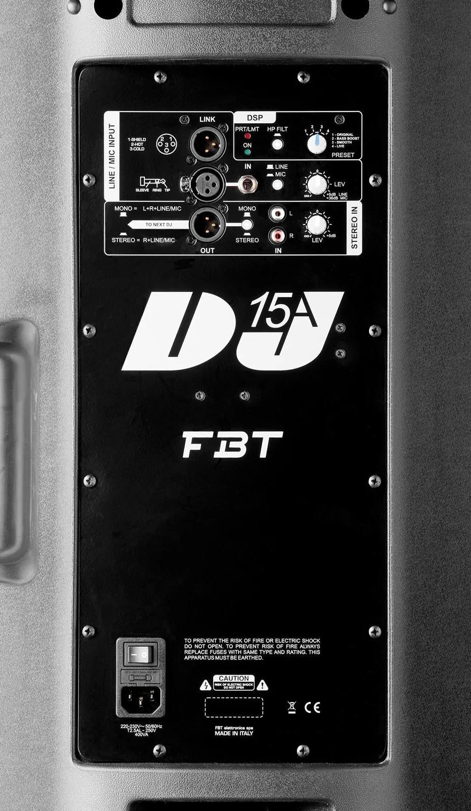 Акустическая система FBT J 15A — активная двухполосная модель с мощностью 450 Вт. Оснащена высокочастотным и низкочастотным динамиками, двухканальным цифровым усилителем и активным кроссовером. Частотный диапазон: 48–20 000 Гц. Имеет 4 DSP пресета для гибкости настройки. На задней панели — регуляторы и входы. Корпус из полипропилена. Фазоинверторная конструкция снижает эффект сжатия-разряжения. Доступна в чёрном и белом цветах.