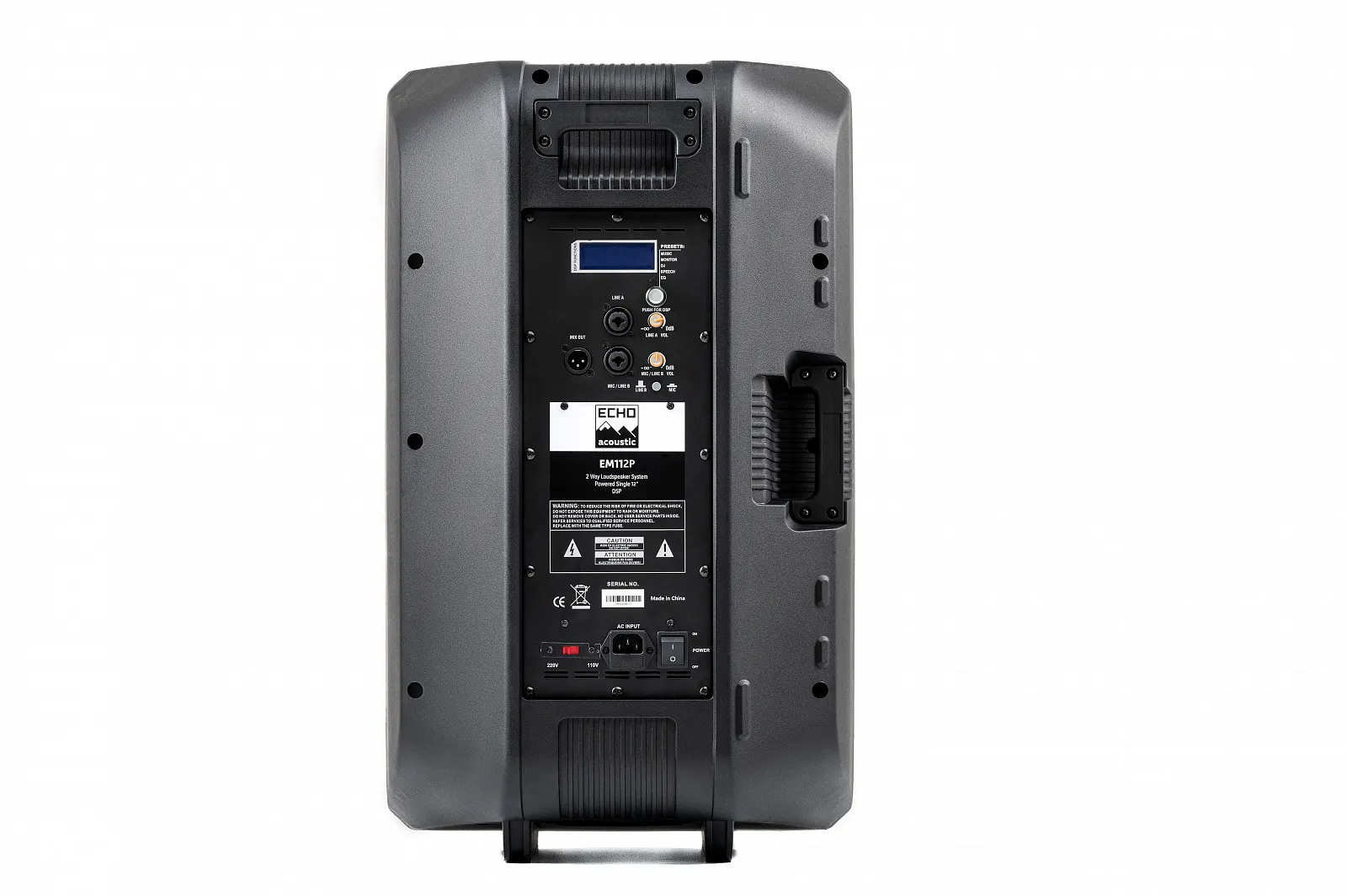 Echo Acoustic EM112P — активная двухполосная акустическая система с технологией Bi-Amp. Оснащена 12" НЧ-динамиком и 1,75" ВЧ-драйвером. Подходит для небольших площадок, идеально воспроизводит разный звук — от речи до диджейских выступлений. Встроенный DSP позволяет быстро адаптировать звучание с помощью переключаемых пресетов.