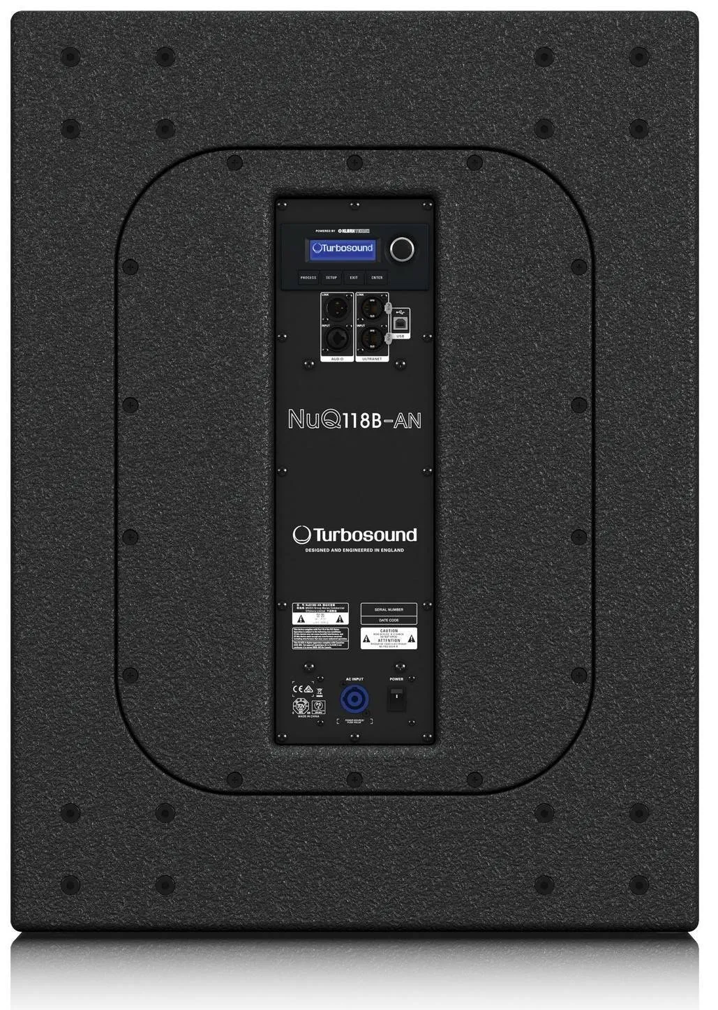 Активный сабвуфер TURBOSOUND NuQ118B-AN — это мощная модель с выходной мощностью 3000 Вт. Он идеально подходит для портативного и стационарного звукоусиления. Оснащён 18-дюймовым низкочастотным динамиком и двойным басовым портом. Имеет встроенный DSP с динамическим эквалайзером и функцией ограничения для чёткости звука. На задней панели есть LCD-дисплей и поворотный энкодер для управления настройками.