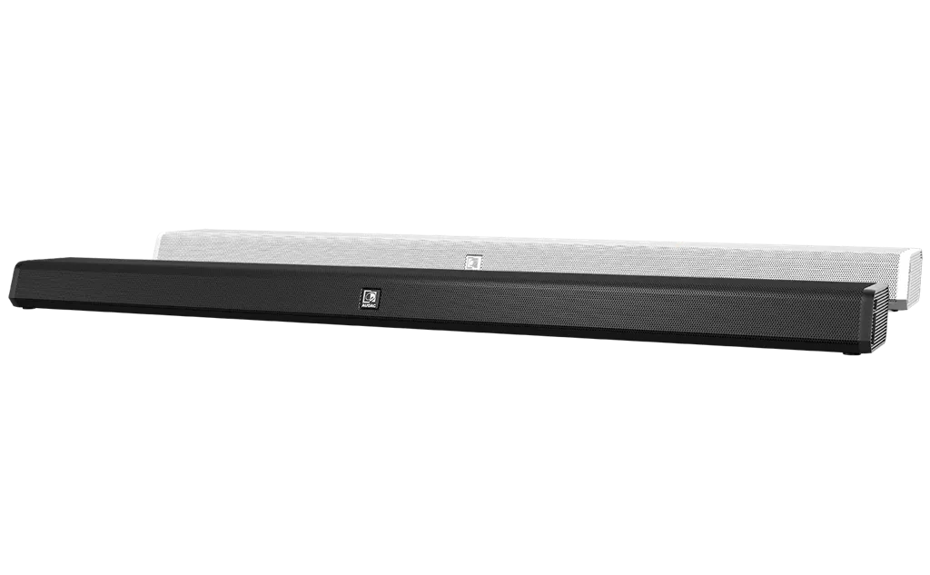 AUDAC IMEO1 - это универсальный саундбар с элегантным дизайном и широким функционалом, который подойдет для озвучивания небольших помещений (аудитории, комнаты переговоров и презентаций, конференц залы), или же его можно использовать в системах домашнего кинотеатра.Данный саундбар оснащен двумя секциями драйверов - два высокочастотные 1.75″ и два низкочастотные 2.5″. Общая мощность составляет около 60 Вт (по 30 Вт на каждую секцию). За правильную работу отвечает встроенный усилитель D класса и процессор для обработки и передачи сигнала WaveSelect DSP, который обеспечивает кристально чистое воспроизведение звука с потрясающей низкочастотной характеристикой. Дополнительно, данный процессор имеет множество стандартных пресетов, благодаря которым можно добится идеального качества звука в любой задаче.