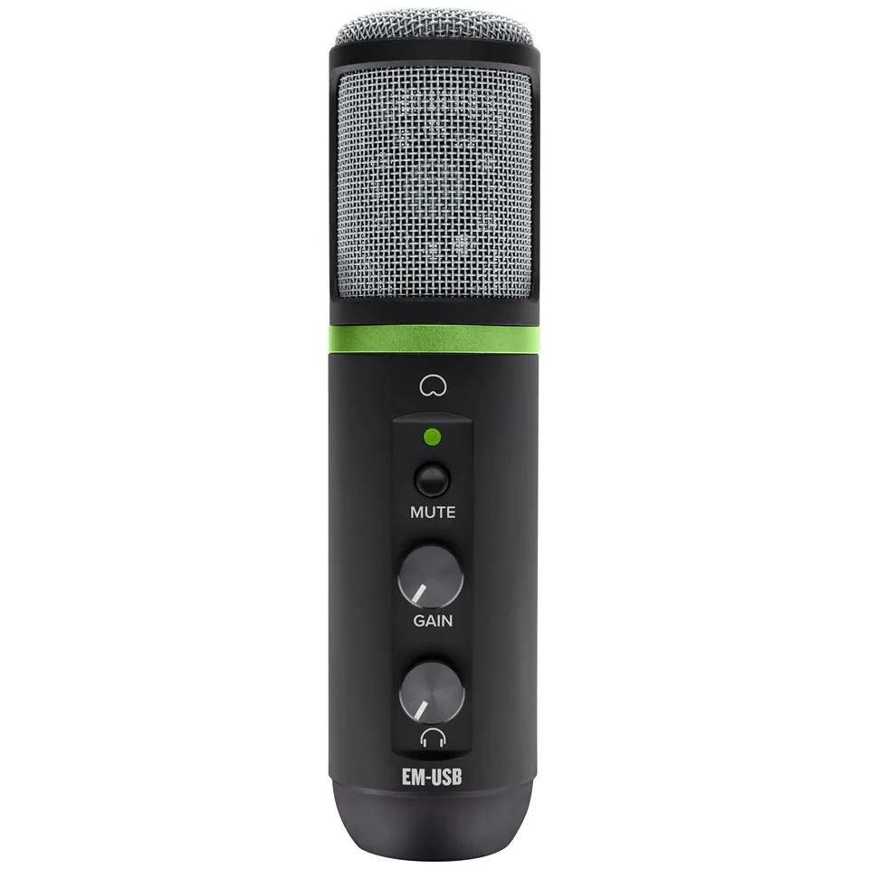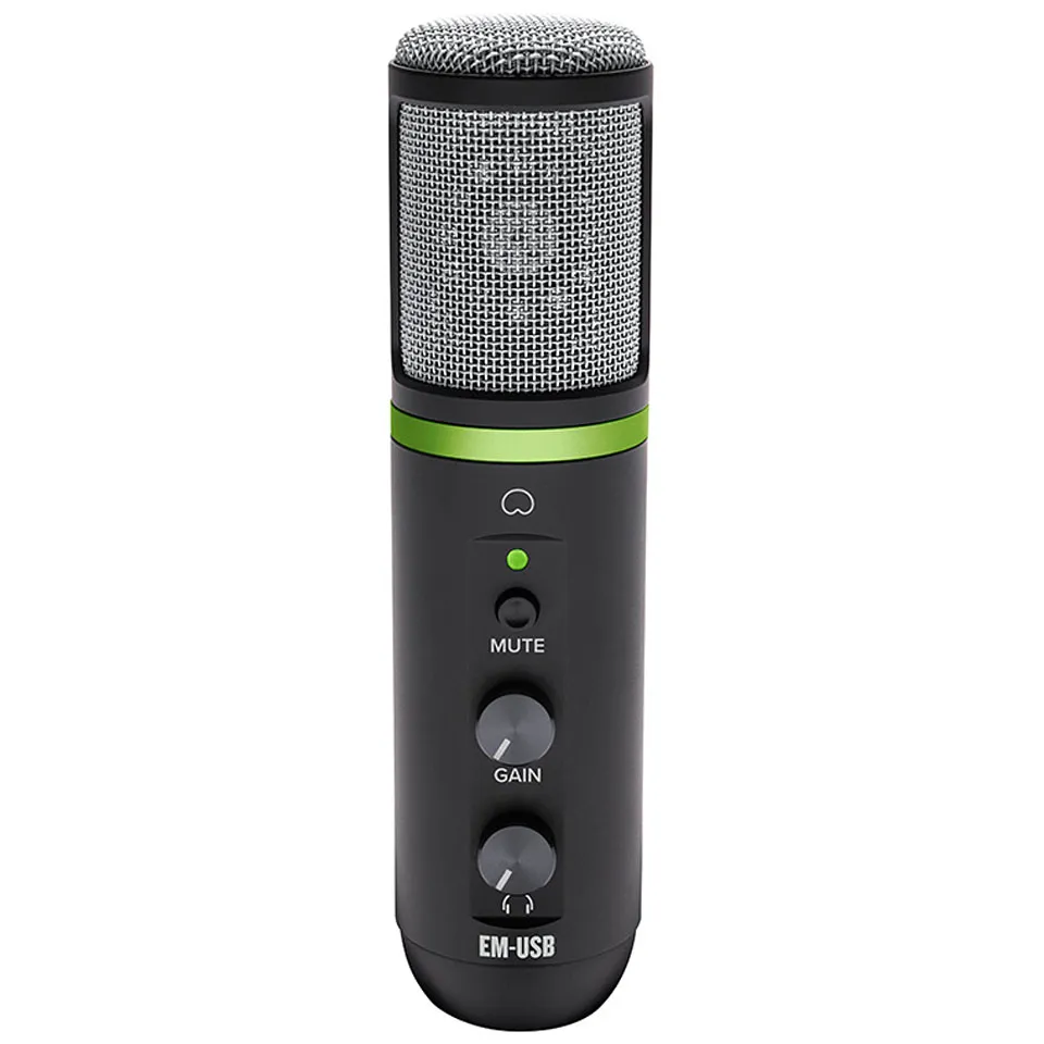 Микрофон Mackie EM-USB — это конденсаторный микрофон с кардиоидной диаграммой направленности. Он предназначен для онлайн-трансляций, записи и вещания. Модель обеспечивает качественную запись с низким уровнем шумов и нулевой задержкой сигнала. Есть кнопка отключения звука, регулятор усиления и ручка громкости для наушников. Подключение к ПК осуществляется через USB-C. В комплекте: программа Pro Tools First с плагинами, настольная стойка и USB-кабель.