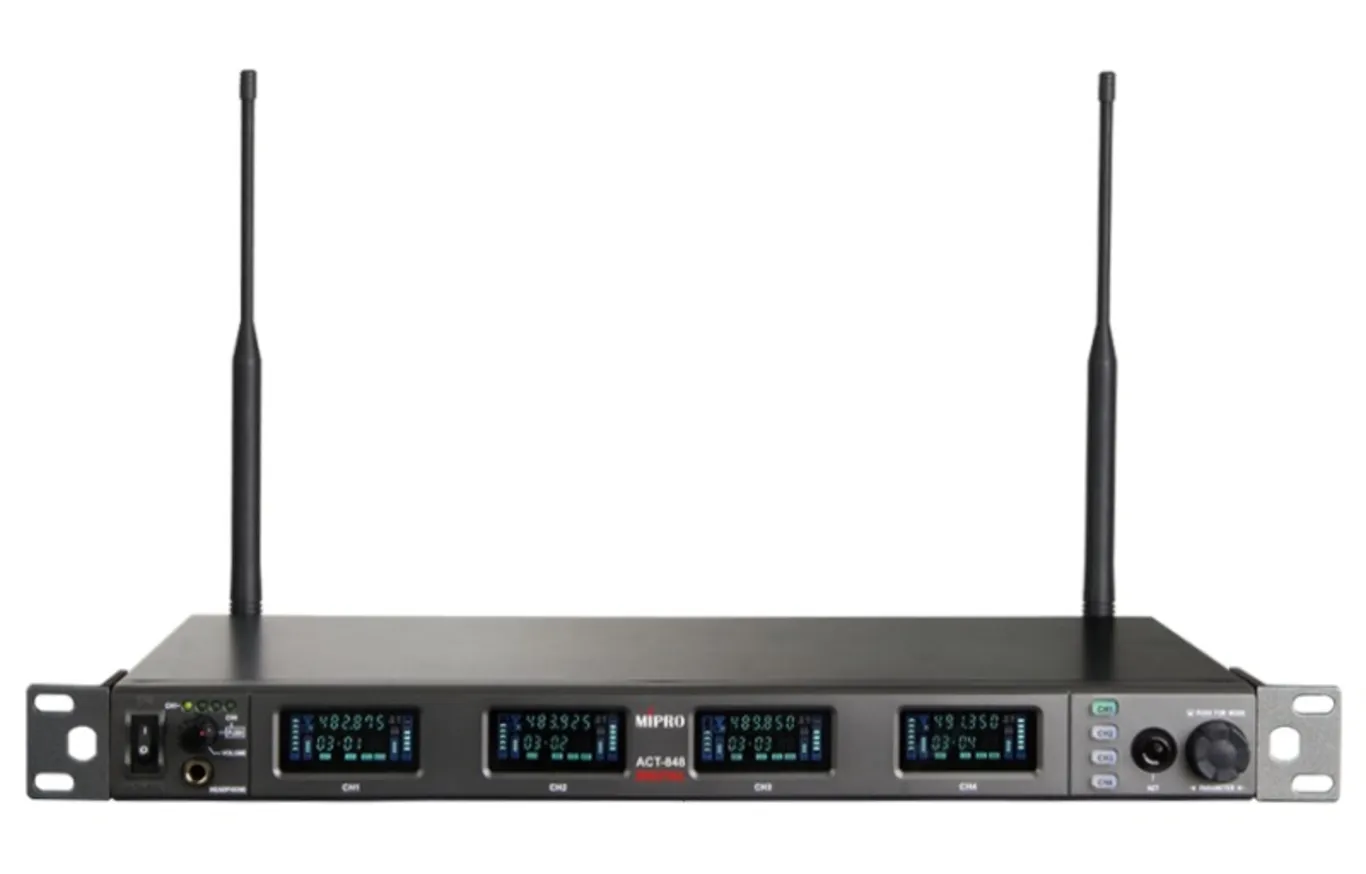 MIPRO ACT-848 — это четырёхканальный цифровой приёмник для радиосистем. Он имеет стильный дизайн и прост в использовании. Модель гарантирует стабильное соединение и качественный звук. Работает в диапазоне 554–626 МГц. Есть 224 пресета каналов и 256-битное шифрование для безопасности.