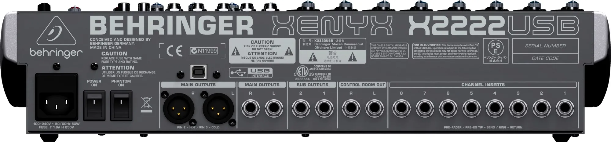 Обратите внимание, питание BEHRINGER X2222USB осуществляется с помощью специального блока "Planet Earth», который характеризуется диапазоном напряжения питания 100-240 В, бесшумностью аудиотракта, низким энергопотреблением и сверхбыстрыми переходными характеристиками.