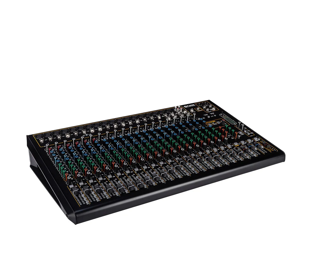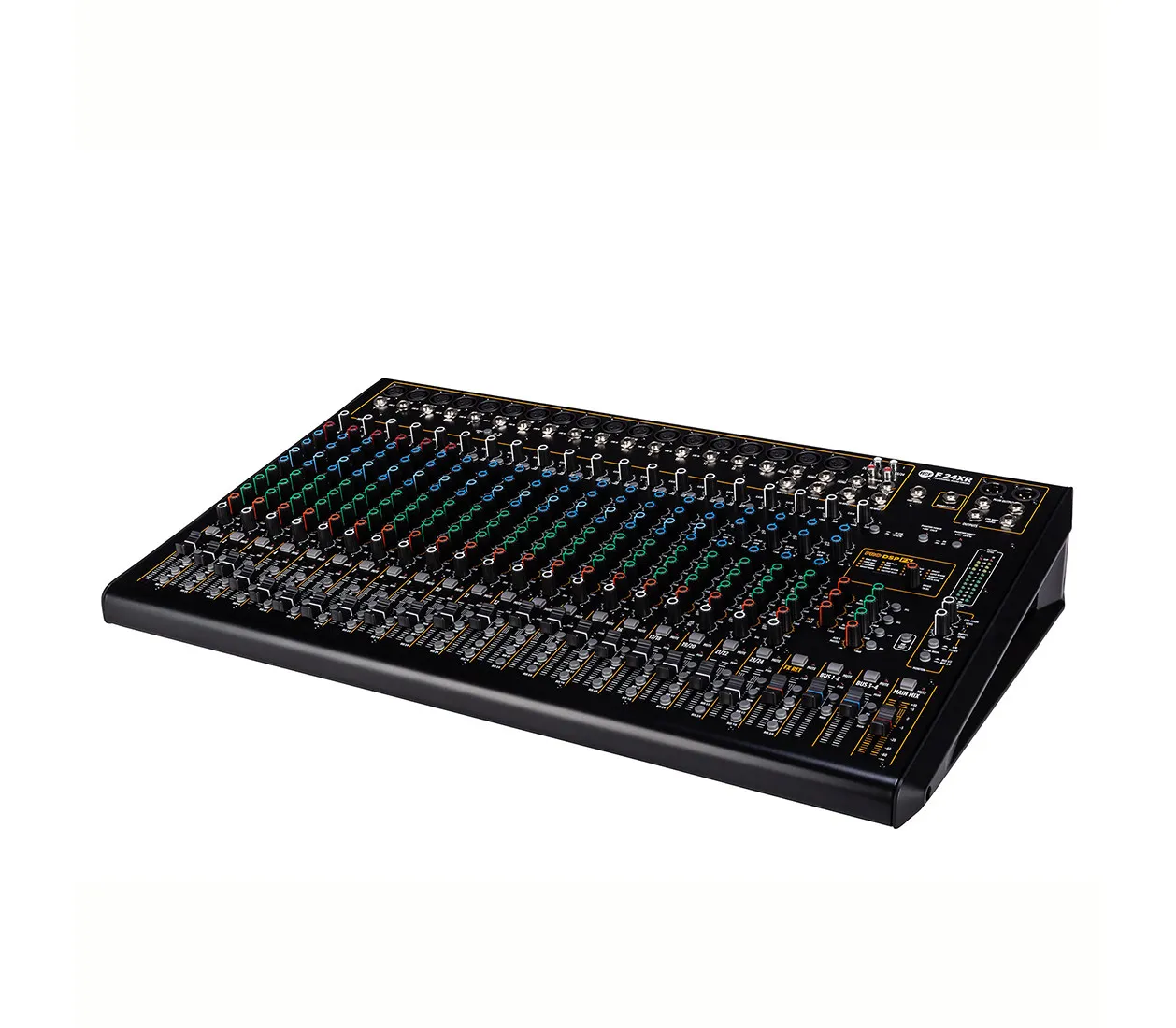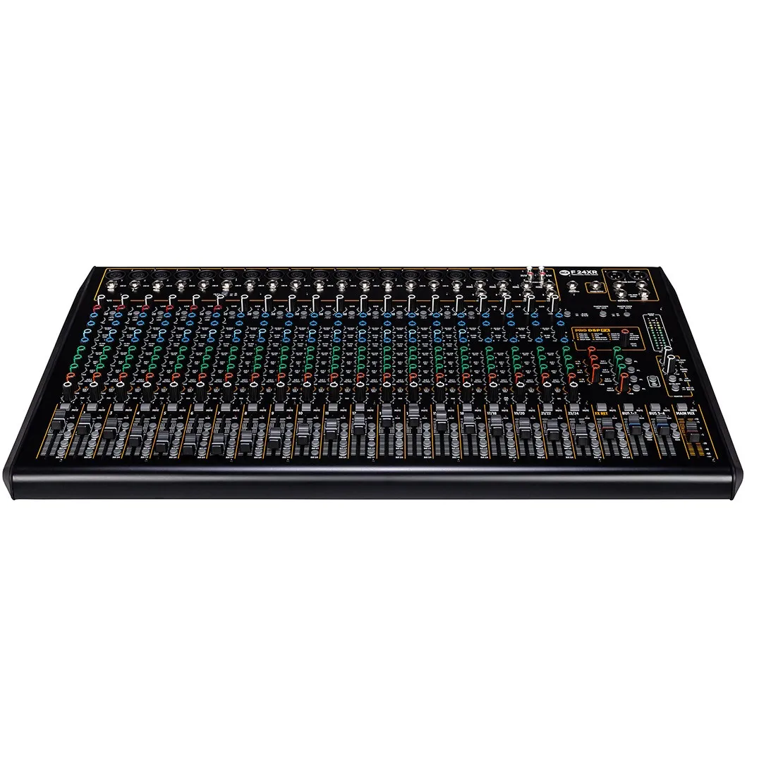 Микшерный пульт RCF F 24XR — профессиональное устройство с 18 микрофонными входами, 16 линейными моно и 4 линейными стерео входами. Оснащён мульти-FX, 6 компрессорами, стереозаписью и воспроизведением через USB. Имеет 3-полосный эквалайзер для моноканалов и 3-полосный для стереоканалов. 16 внутренних пресета PRO DSP, 2 выходные шины и 4 разъёма Aux. Прочный металлический корпус, разработанный в Италии.