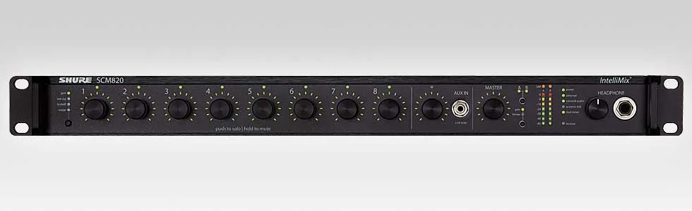 SCM820E оснащён ручками регулировки и светодиодными индикаторами для контроля уровня сигнала. Можно управлять микшером дистанционно через ПК с помощью программного обеспечения. Устройство поддерживает пять режимов работы, что облегчает работу специалиста.