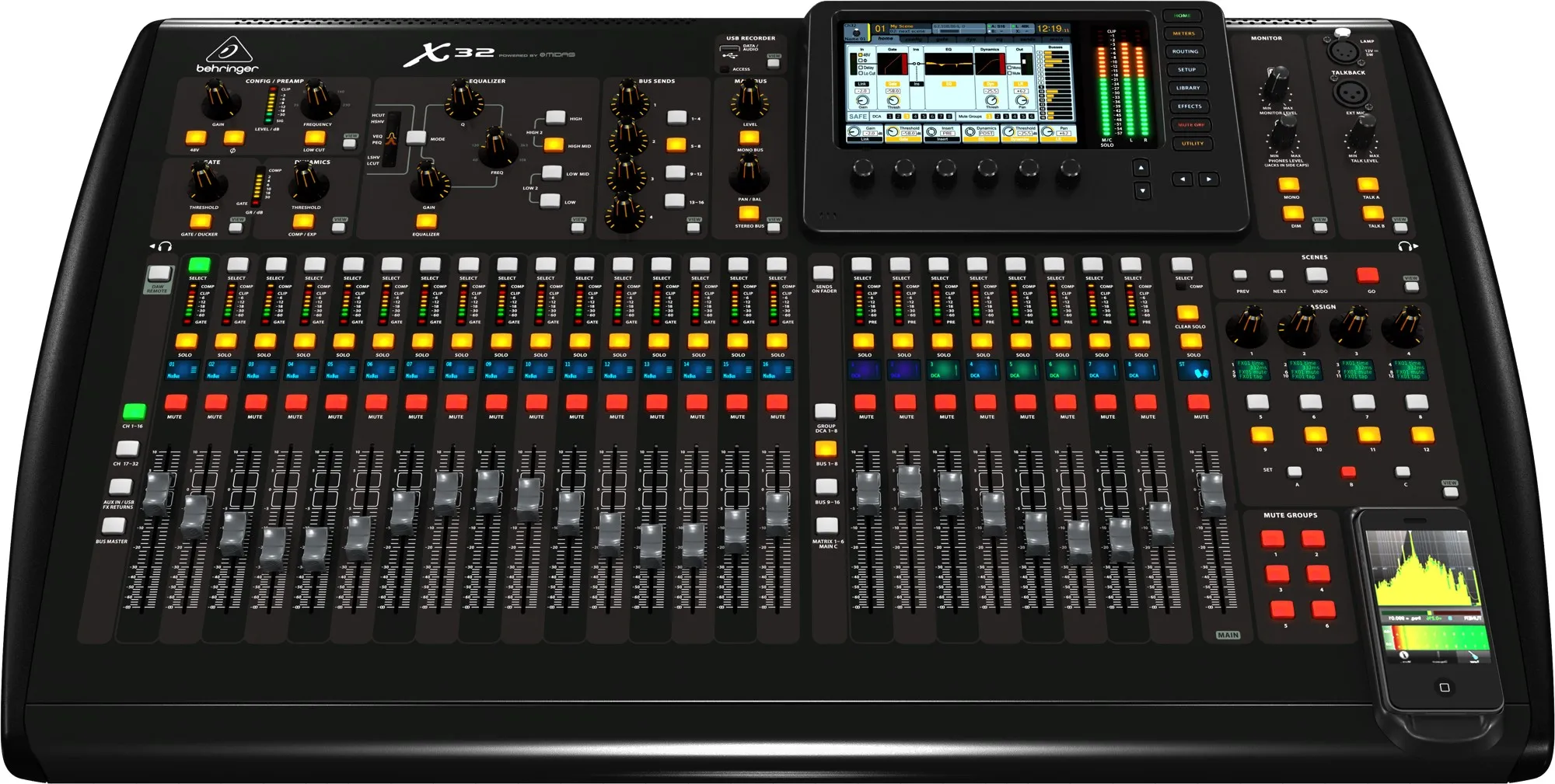 В начале разработки модели BEHRINGER X32, компания Behringer обратилась за помощью к ряду однотипных компаний, таких как KLARK TEKNIK и MIDAS, которые признаны во всем мире благодаря EQ/FX обработке и своим цифровым пультам. Высококлассные микрофонные программируемые предуселители, которыми обладает модель BEHRINGER X32, основываются на подлинном дизайне компании MIDAS. Созданная конструкция способна обеспечить непревзойденный коэффициент CMRR (подавление синфазного сигнала), а также неимоверно низкий коэффициент THD (гармонические искажения). Данная модель микшерного пульта является удивительно чистой смесью высоких технологий, объединенных с невероятно дружескими к пользователям характеристиками.