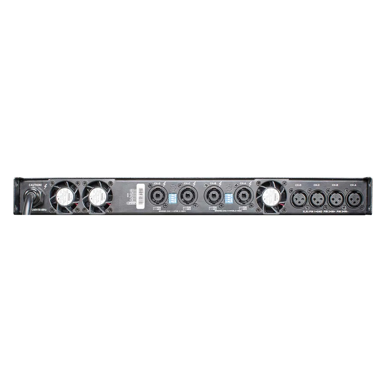RFIntell DA2.4 — мощный усилитель с характеристиками: 4х250Вт/8Ом, 4х420Вт/4Ом, 4х720Вт/2Ом. Работает от сети 90–260В. Компактный (высота 1U) и лёгкий (9 кг).